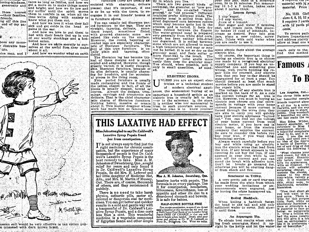 Besides, perhaps their physical ailments were related to the introduction of inferior arsenic and strychnine into various products, or perhaps the complete absence of such healthifying ingredients in fake products (shame on the flim-flammers!), but I’m certainly no doctor so we can just go ahead and file that under “speculation”. Moreover, such an analysis fails to take into consideration the countering health benefits provided by certain yeasty tablets which, along with vitamins A, B, C, and calcium, contained only the finest and most refined naturally occurring strychnine.